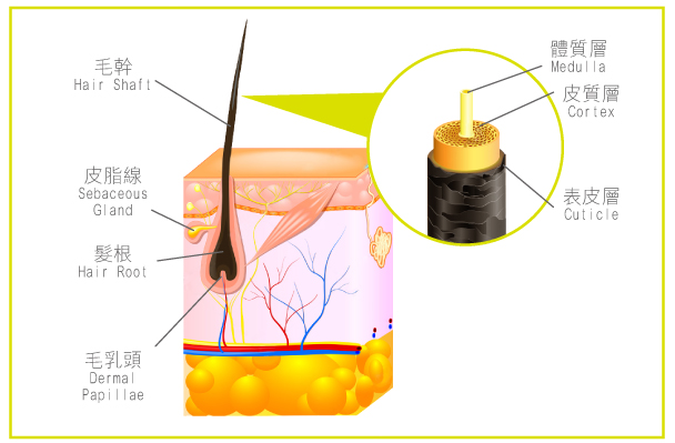 頭髮的中間層,主要影響毛髮的粗幼及軟硬度,